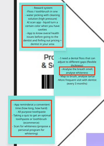 To go from research insights to concrete ideas, my team ran a design thinking ideation workshop with 12 participants. The goal was to generate a wide range of “holistic dental care” service ideas, then converge on ideas that fit Jade’s habits, motivations, and constraints.